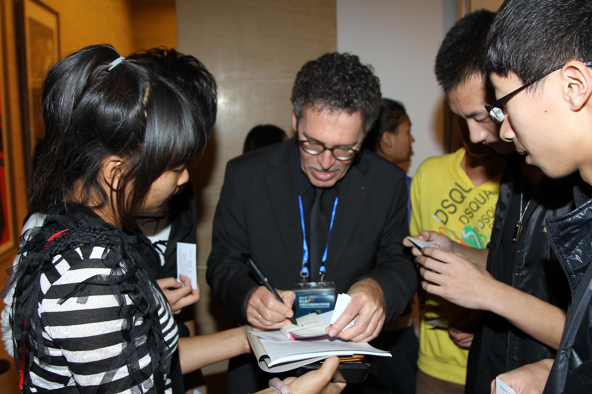Elmar Peintner bei der Beijing International Art Biennale beim Schreiben von Autogrammen