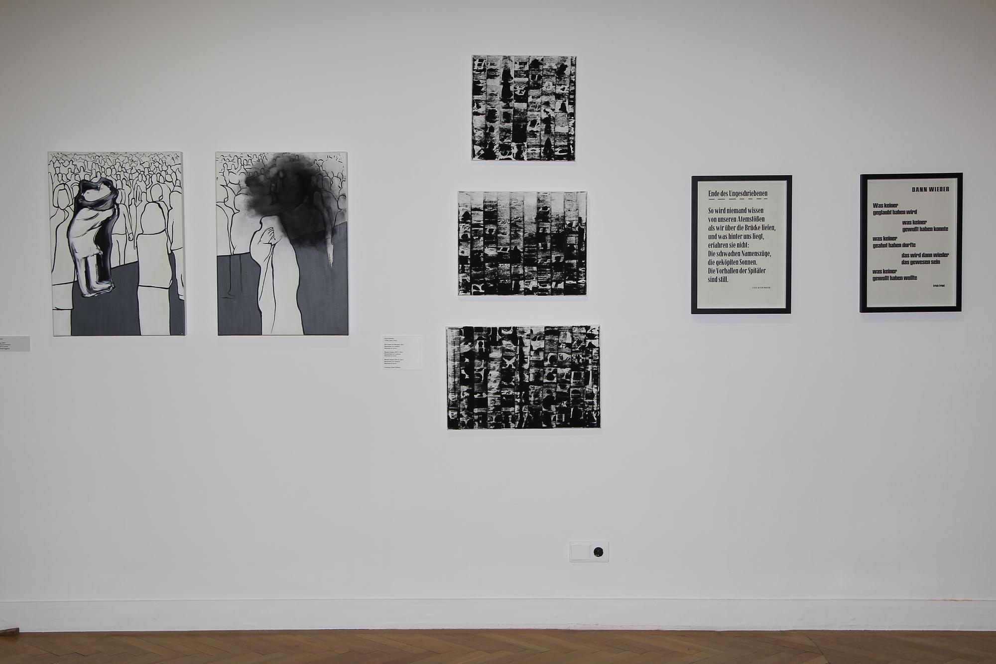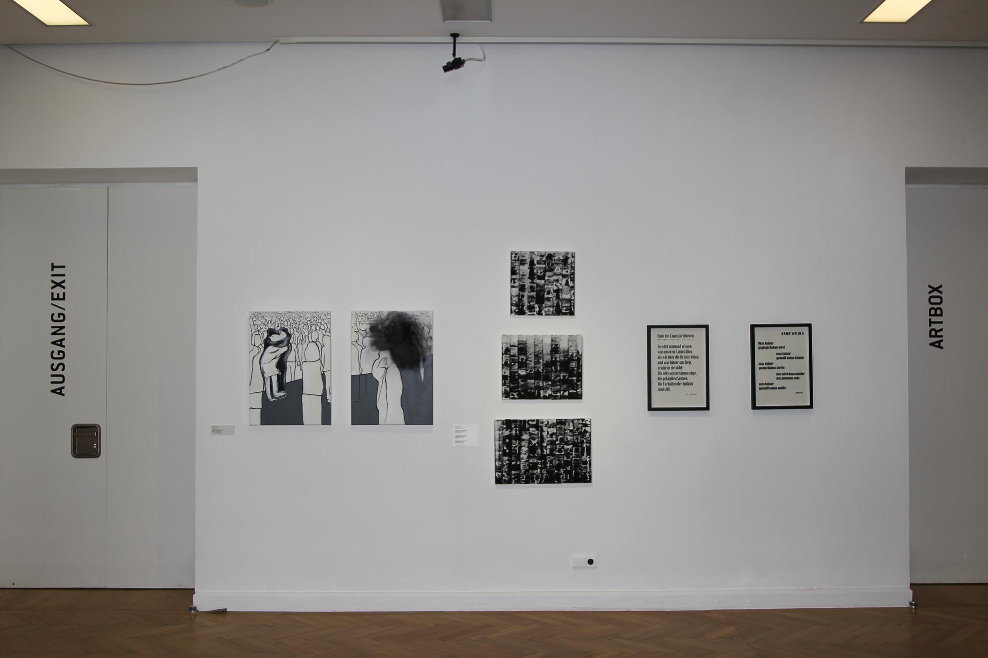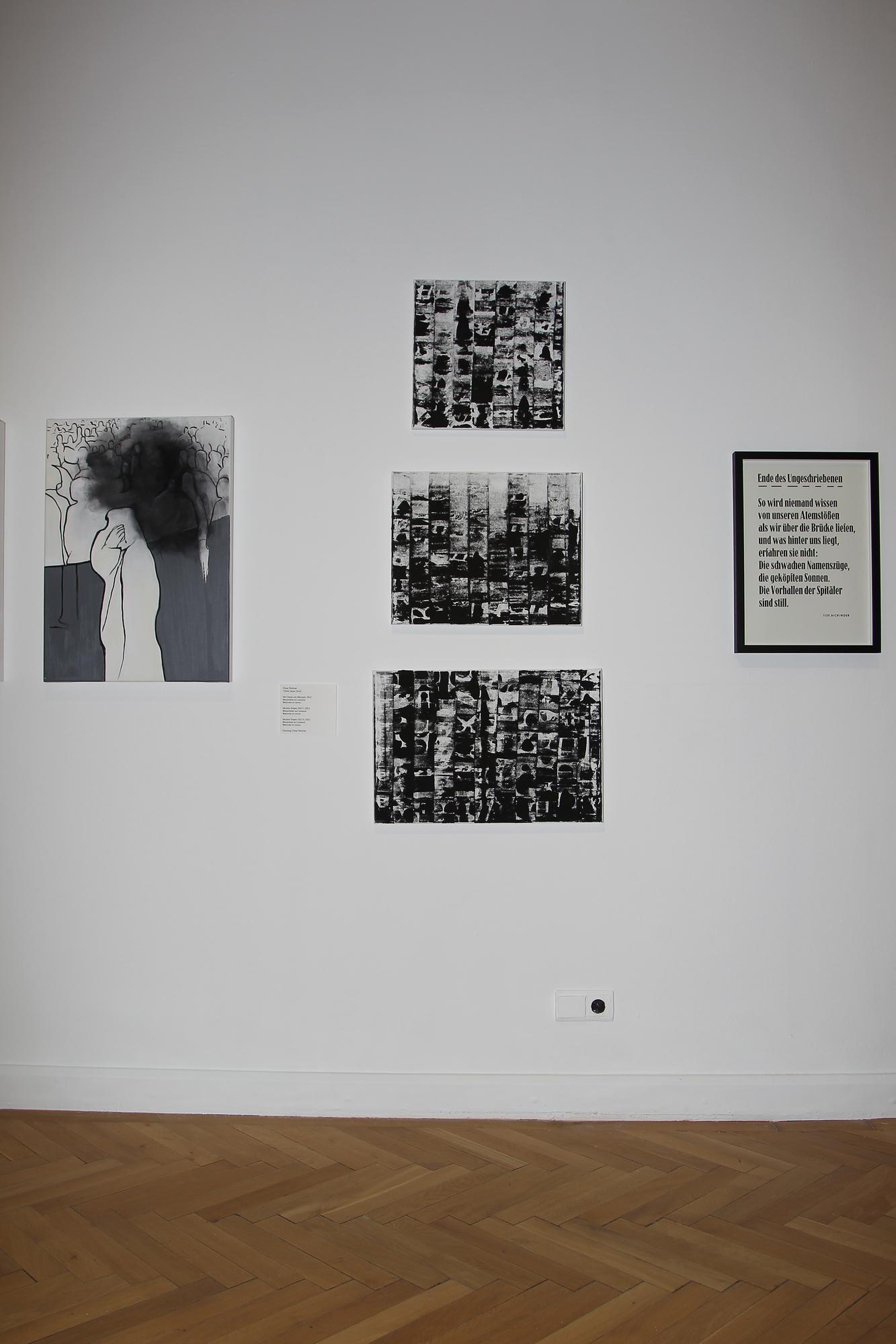 Installationsansicht Arbeiten von Elmar Peintner bei der 3 Wiener Graphikbiennale in