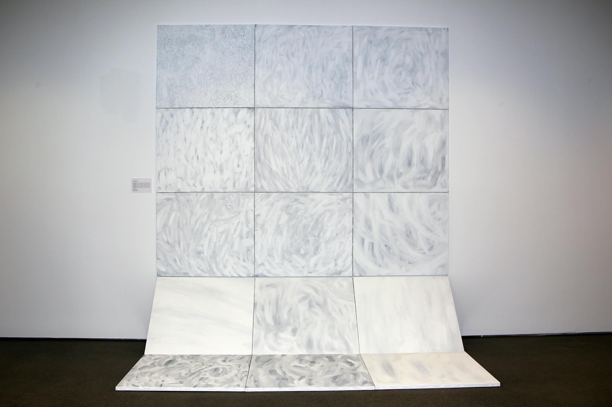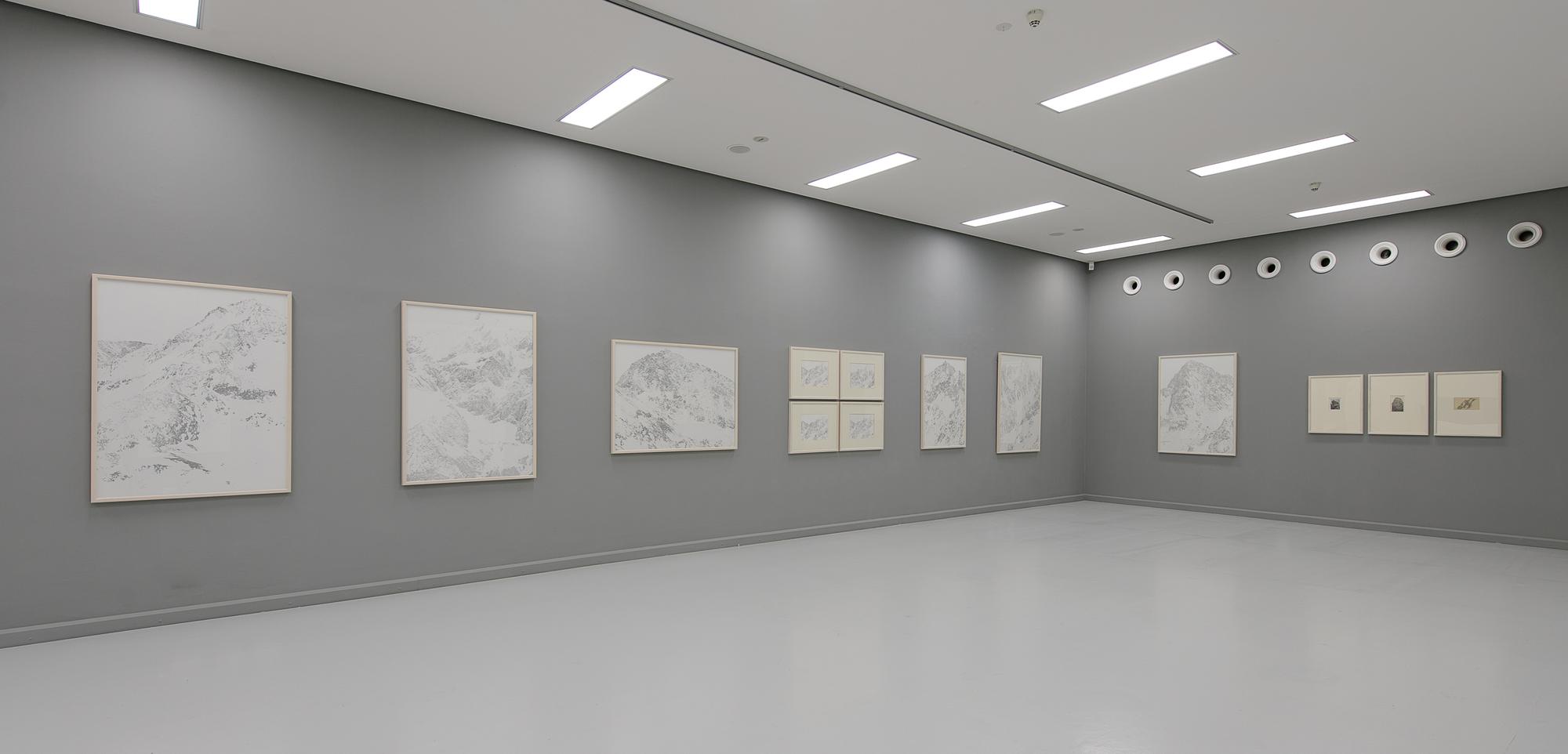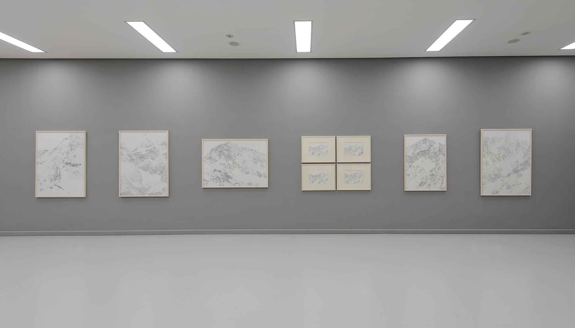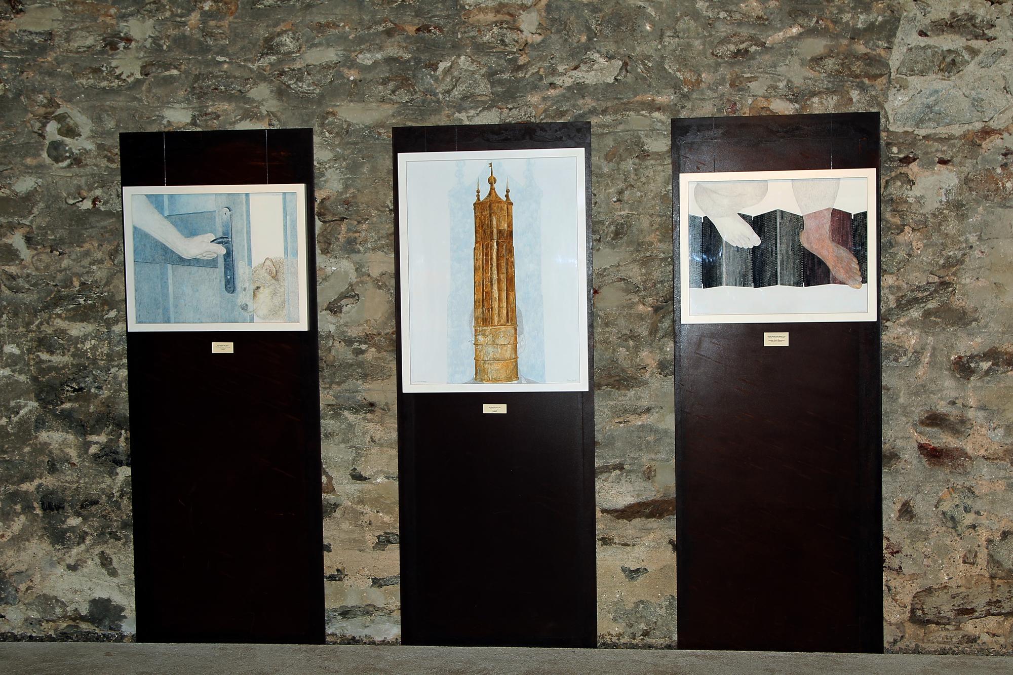Installationsansicht Arbeiten von Elmar Peintner bei der 3 Wiener Graphikbiennale in