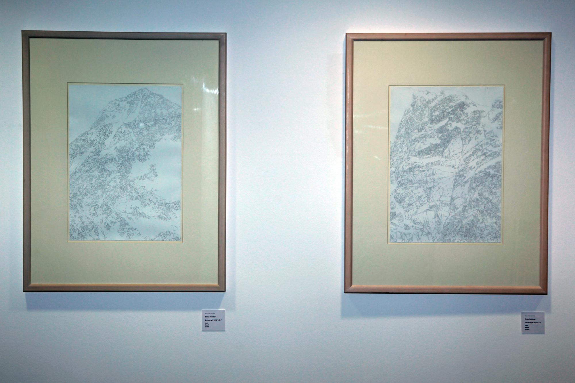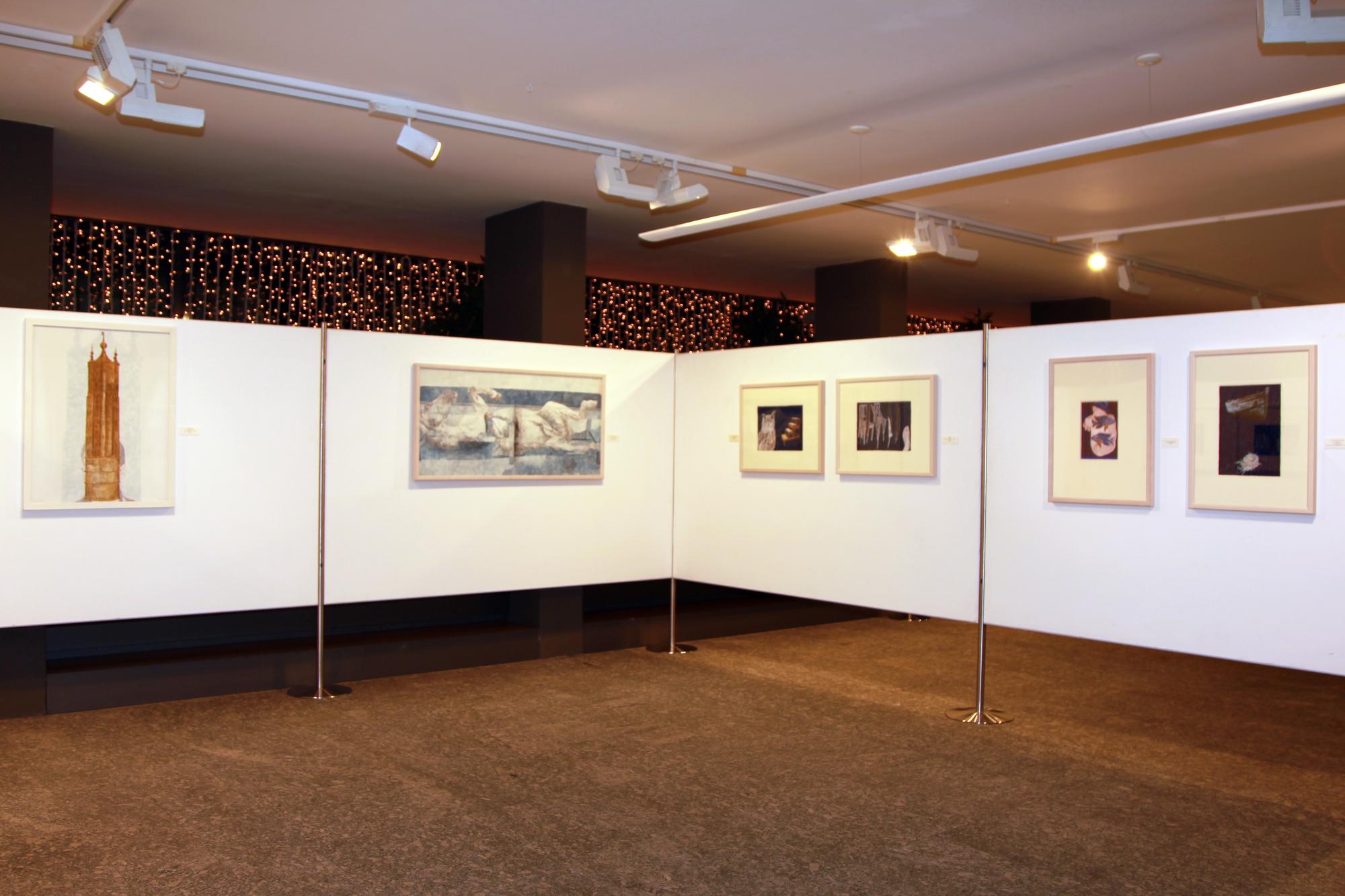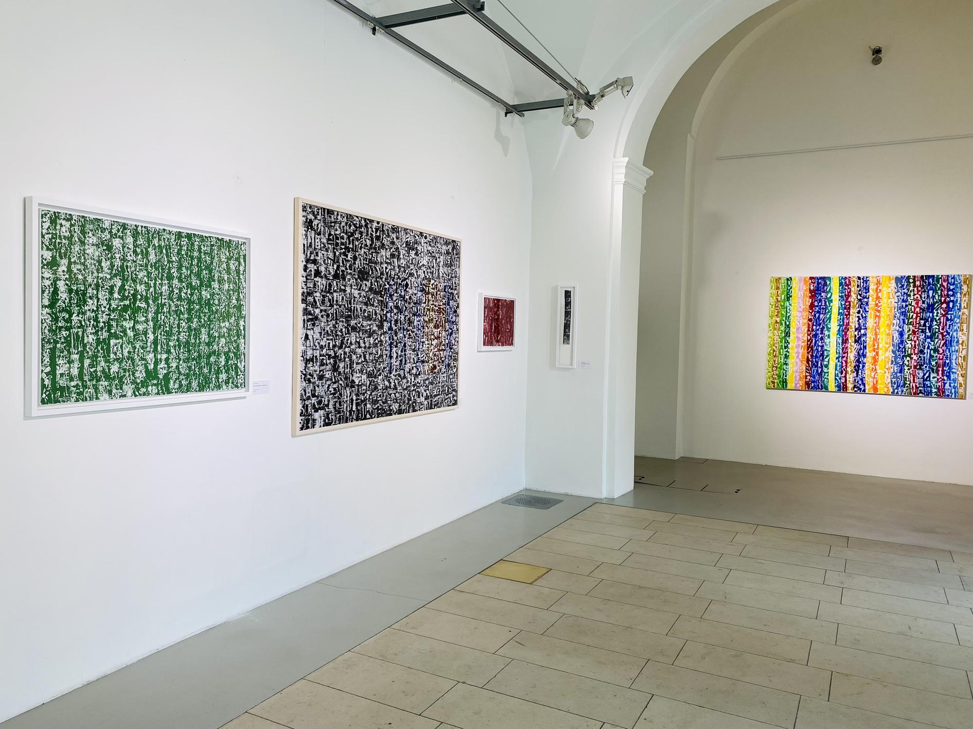 Installationsansicht Arbeiten von Elmar Peintner bei der 3 Wiener Graphikbiennale in