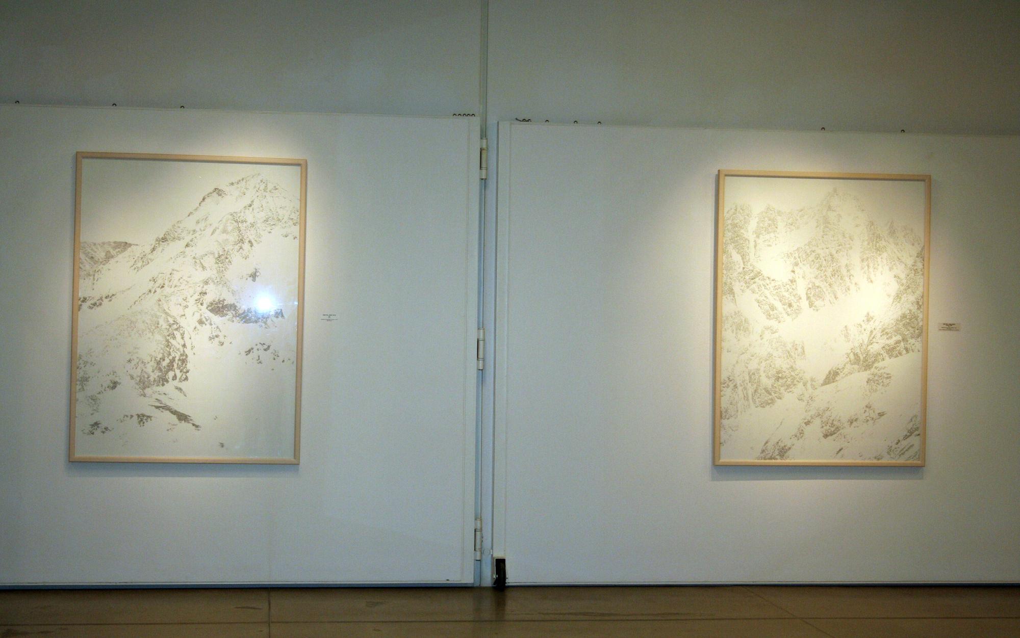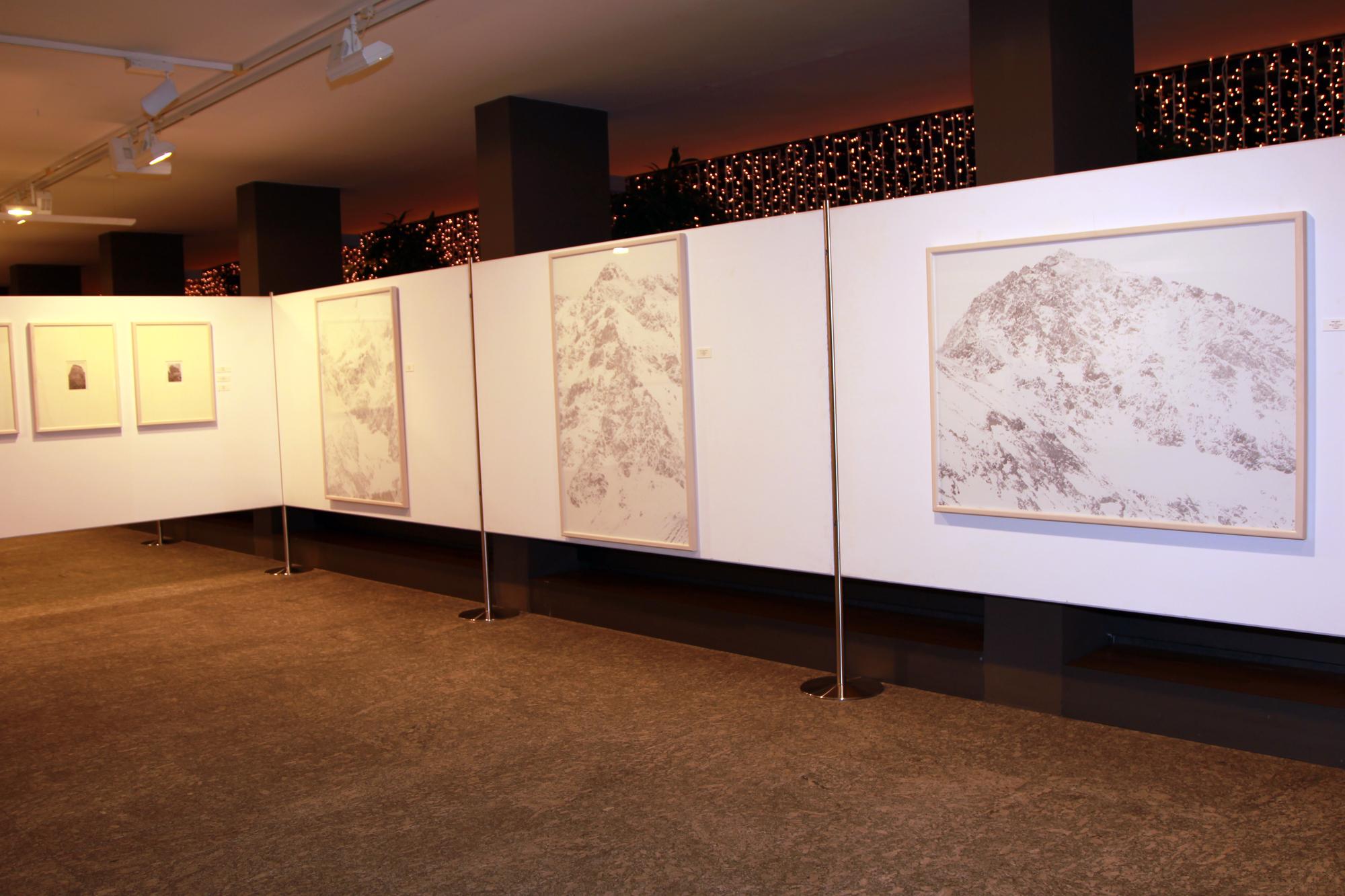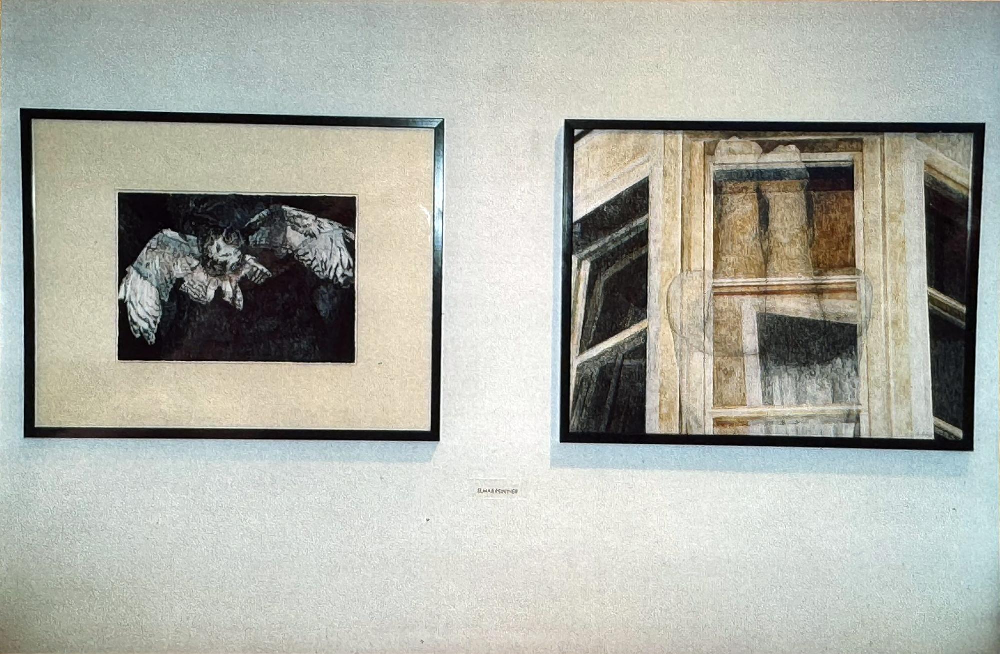 Installationsansicht Arbeiten von Elmar Peintner bei der 3 Wiener Graphikbiennale in
